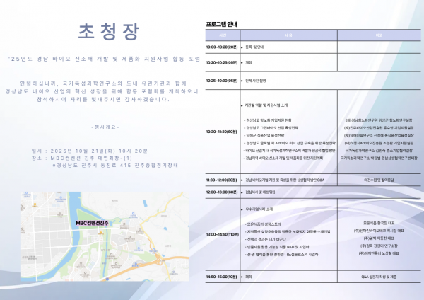 ['25년도 경남 바이오 신소재 개발 및 지원사업 합동 포럼] 행사를 진행합니다.